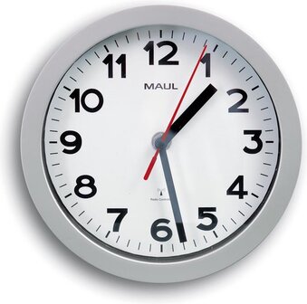 * De MAUL Step, 20cm RC, is een populair model binnen onze serie wandklokken, geleverd in een aantrekkelijk en strak design. *Leverbaar in diverse maten met een doorsnee van 20, 30, 35 en 40 cm.. *Moderne rand van hoogwaardig kunststof. *Cijfers duidelijk leesbaar. *Stijlvolle uitstraling voor in kantoor of bij u thuis. *Wandklok afgewerkt met helder mineraalglas voor de wijzerplaat. *Werkt op één 1,5 V AA batterij, deze is bijgesloten. *Eenvoudige montage d.m.v. ophangoog. *Universeel te gebruiken in kantoren, spreek- en wachtkamers, ontvangsthallen, werkplaatsen of thuis. *Automatische tijdsynchronisatie met het signaal van de tijdzender DCF77 in Frankfurt. *Signaalinterferentie door geologische situaties of metalen constructies in gebouwen is mogelijk. *In deze gevallen is een handmatige aanpassing noodzakelijk. *Bereik van het signaal ca. 1500 km van de zenderlocatie. *MAUL Step is een robuust standaardmodel in elegant zilver ..