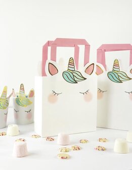 Talking Tables Set of 6 Pink Unicorn Party Bags for Kids with Handles, Ears and Horns, for Sweets, Treats, Loot, Gifts, Birthday, Paper - Cadeautasjes