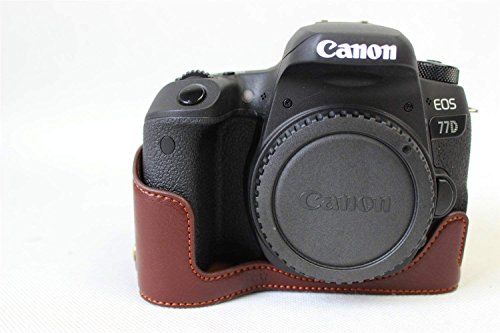 Zakao EOS 77D Camera Case, Echt Lederen Half Bottom Opening Versie Holster Camera Case Met Hand Strap Beschermhoes Tas Case voor Canon Eos 77D 800D (Koffie) - Camcorders