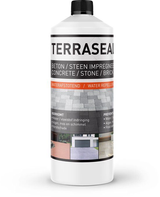Bescherm jouw terras, oprit of tuinpad met Terraseal Pro. Dit transparante impregneermiddel voor beton en steen maakt tegels en bestrating afstotend, vuilafstotend en beter bestand tegen groene aanslag, mos, algen en vorstschade. Perfect voor tuintegels, terrastegels, klinkers, natuursteen en metselwerk.