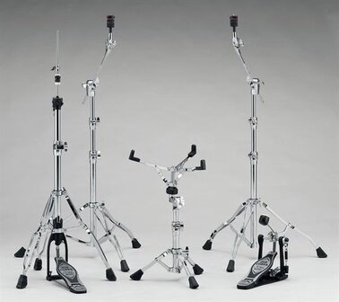Tama hardware pack van een tour-waardige kwaliteit en bestaande uit een HS80W Roadpro snare stand, HH605 Iron Cobra hi hat stand, 2x HC83BW Roadpro cymbal boom stands, HP600D Iron Cobra Duo Glide Single bassdrum pedaal.