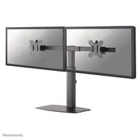 Met deze Neomounts monitorsteun, model FPMA-D865DBLACK, plaatst u twee flatscreens op het bureau via een bureauvoet.