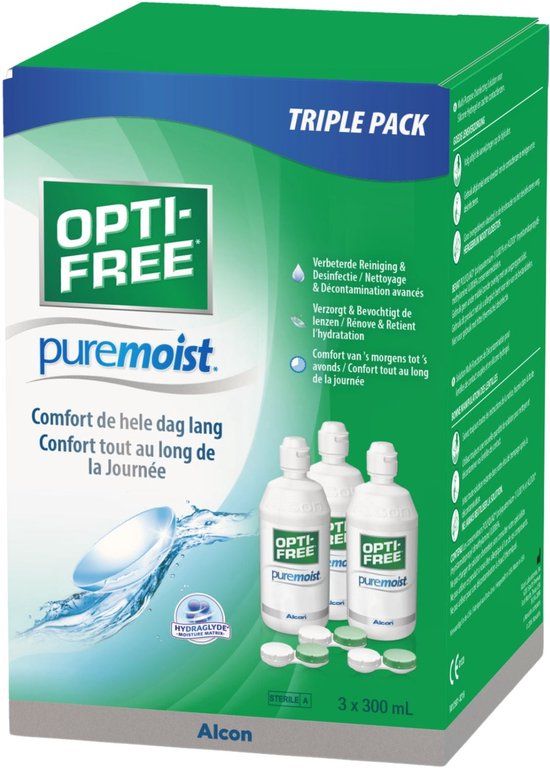 Naast een 16 uur durende bevochtiging en verwijdering van vet- en eiwitaanslag, bevat OPTI-FREE® PureMoist® een verbeterde desinfectie formule. De twee desinfectiemiddelen POLYQUAD® en ALDOX® werken tegen schadelijke micro-organismen zoals bacteriën, schimmels en Acanthamoeba. Deze bestanddelen desinfecteren silicone hydrogellenzen en zachte (hydrofiele) contactlenzen en zijn mild genoeg voor gevoelige ogen.