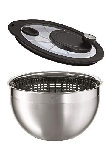 Rösle slacentrifuge met glazen deksel, Ø 24 cm, roestvrij staal 18/10, 2-ton gepolijst, zwengelaandrijving, volledig demonteerbaar, vaatwasmachinebestendig - Containers voor voedselopslag