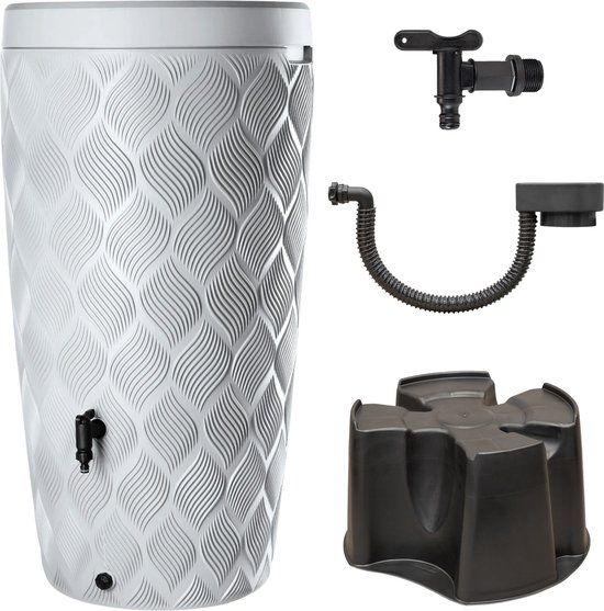 Bestaat uit: Regenton, inzet plantenbak, voet, vulautomaat, kraan