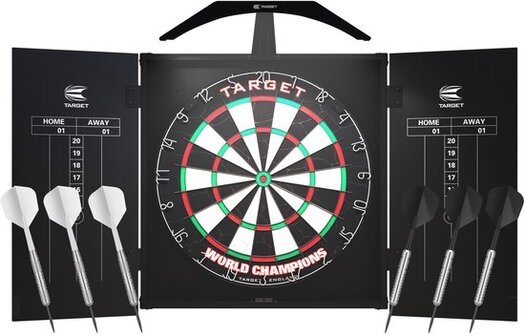 De Target Arc Cabinet Set is een complete dartopstelling voor thuis. Het cabinet is voorzien van 2 krijtborden om de scores bij te houden. De set wordt geleverd inclusief een Target Arc Led System, dit lichtsysteem zorgt ervoor dat het dartbord in de kast optimaal wordt verlicht.