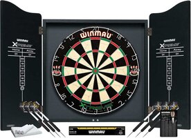 De professionele Dart »Xtreme« complete set van de toonaangevende Engelse fabrikant "Winmau" voldoet aan alle toernooi-eisen van de "British Darts Organisation". Het hart van de set is het sisal dartbord in toernooikwaliteit. Het bord is ondergebracht in een zwarte houten kast met dubbele deuren. Inclusief 2 sets stalen dartpijlen, krijt, dropline, afrekenkaart en montagetoebehoren.