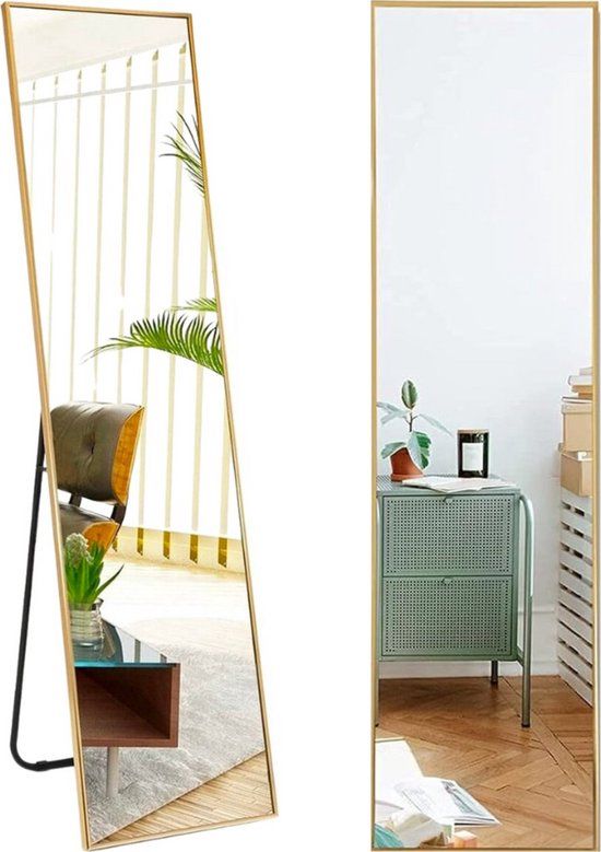 SensaHome Passpiegel - Gold Standing Rectangular Mirror with Metal Frame - 39x156x4 CM - Spiegels