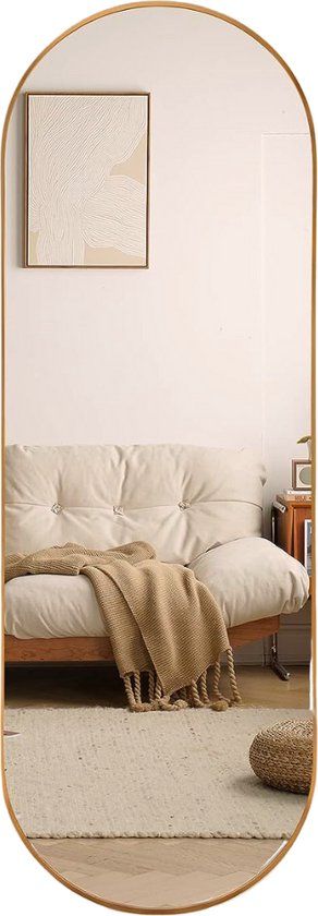 SensaHome Oval Passpiegel - Minimalistische Design Wandspiegel - Staande Spiegel met Metalen Rand - Modern - Kleedkamer Spiegel - 50x160CM - Goud - Spiegels