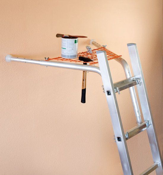 - Telescopisch instelbare (25 cm) wandafstandhouder met handig rekje om materialen op te zetten.