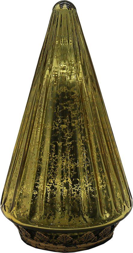 Clayre & Eef Kerstboom - Ø 11x19 cm - Goudkleurig Glas - LED - Kerstdecoratie - Decoratieve notenkrakers