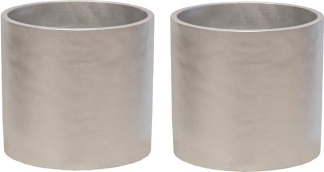 2x stuks plantenpot/bloempot gemaakt van keramiek in de kleur zilver met een strakke afwerking. Afmetingen: Diameter 14 cm en Hoogte 13 cm. Vorm: cilinder. Stijlvolle bloempot uit de Adana Smooth Cylinder serie voor binnen gebruik is een schitterende toevoeging aan uw interieur.