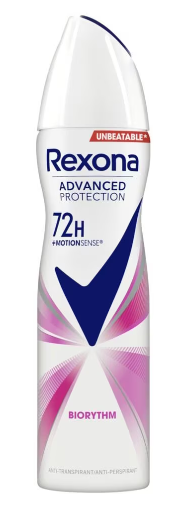 Rexona Biorythm Anti-Transpirant Spray beschermd u tot wel 72 uur tegen zweet en lichaamsgeur. Met de unieke MotionSense technologie van Rexona blijft u gedurende lange tijd fris. De technologie zorgt ervoor dat microcapsules op het huidoppervlak achterblijven, die worden geactiveerd door beweging. Wanneer deze microcapsules door wrijving openbarsten, wordt er een aangename, subtiele geur vrijgegeven die gedurende de hele dag blijft hangen, zodat u de hele dag heerlijk fris ruikt.Rexona Biorythm Anti-Transpirant Spray:Geeft tot 72 uur bescherming tegen zweet en lichaamsgeurFrisse geur bij elke beweging dankzij Rexona MotionSense technologieDe spuitbus van de deodorant is gemaakt van oneindig recyclebaar aluminiumHoe te gebruiken?Schud de anti-transpirant spray eerst goed. Houd de deodorant ongeveer 15 centimeter van je oksel en spray gelijkmatig onder de oksels in een goed geventileerde ruimte. Vermijd contact met de ogen en beschadigde huid.