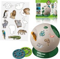 Voordat je begint, kun je de projector versieren met de 12 verschillende dierenstickers. Dan is het tijd om de diaschijf erin te doen. Het gebruik is super simpel: draai de dia schijf om het volgende beeld te zien en geniet van de magie!