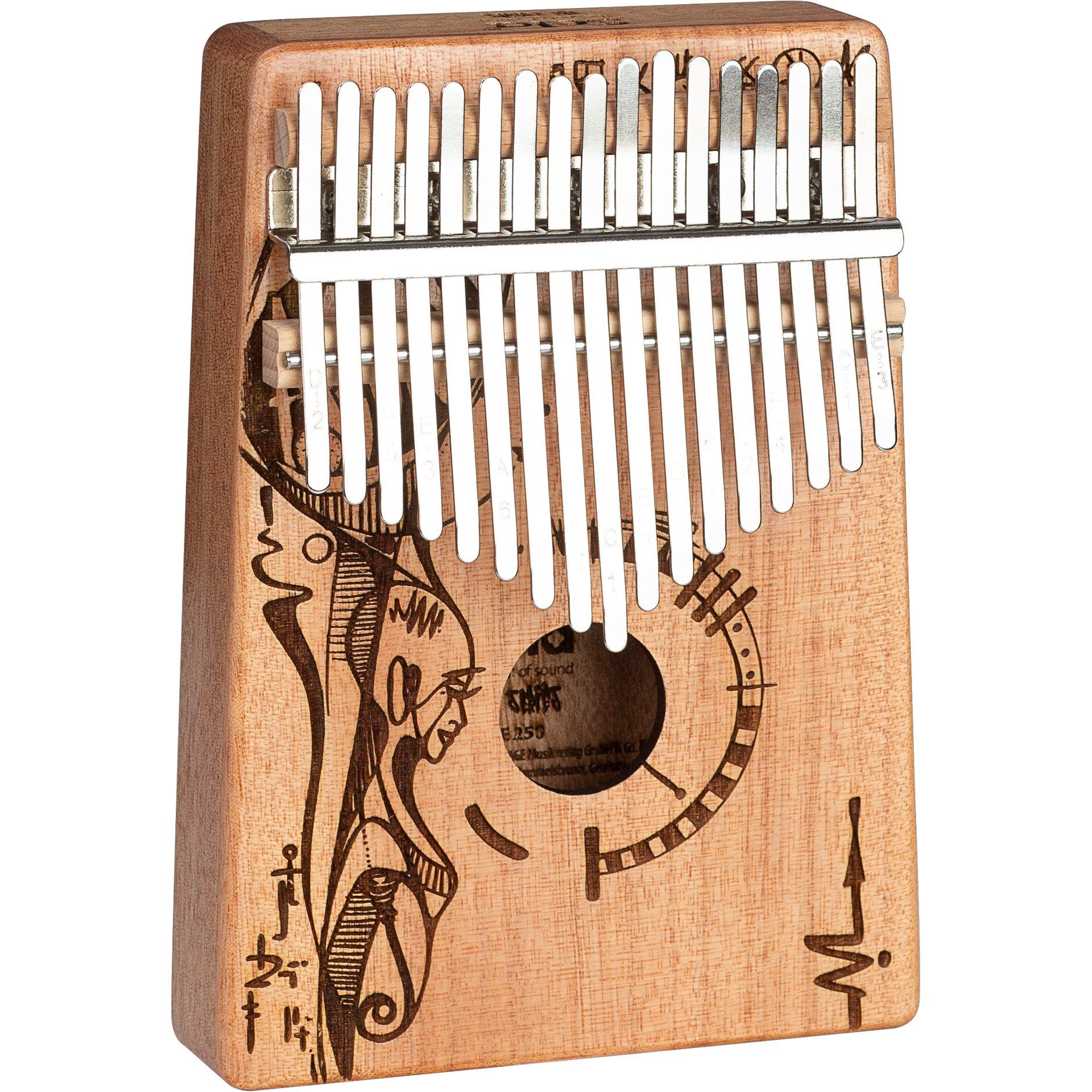 Op zoek naar een duimpiano die anders is dan de anderen? Met de Sela Art Series Kalimba 17's beschik je over een natuurlijk uitziende hollow-body kalimba dat is uitgevoerd met een unieke gelaserde of geverfde finish. Het gaat hier om een kalimba met 17 tonen die in C-majeur zijn gestemd; een toonsoort die zeer geschikt is voor zowel beginnende als geavanceerde spelers. Je geniet hiermee van een volle, heldere en warme klank die ideaal dient voor de begeleiding van zang, muzikanten en dansers. De Sela Art Series Kalimba is in vele verschillende afwerkingen beschikbaar en wordt geleverd met een handige draagtas, stoffen zak en stemhamer.
