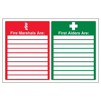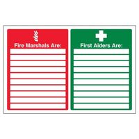 VSafety Fire Marshals/First Aiders Sign - 300mm x 200mm - Self-Adhesive Vinyl