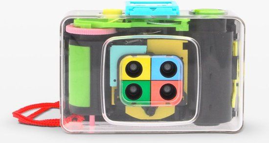 Het juweeltje van de ActionSampler familie! Bedekt met doorzichtig plastig zorgt deze hoekige lichtgewicht camera voor een reeks foto's op één 35mm afdruk. Met deze camera maak je pop-art in een handomdraai.