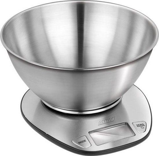 MPM Keukenweegschaal Digitaal met Kom - Zilver - RVS