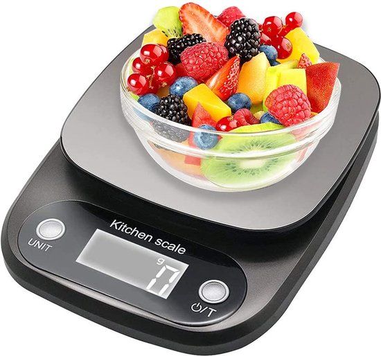 Dit is een ultra slanke digitale keukenweegschaal met strak roestvrijstalen weegoppervlak. Hoge precisie sensor weegbereik van 5Kg/0.1g Divisi