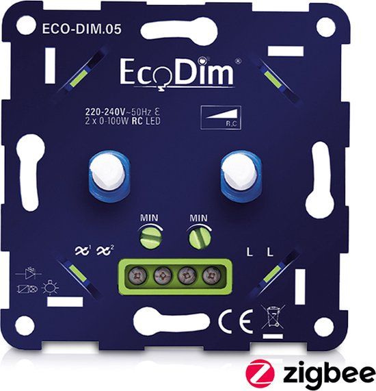 Bekijk productRexTech Ecodim Dubbele Draaidimmer Zigbee - Inbouw - 2x 0-100W - Fase afsnijding - Blauw - Dimmerschakelaars