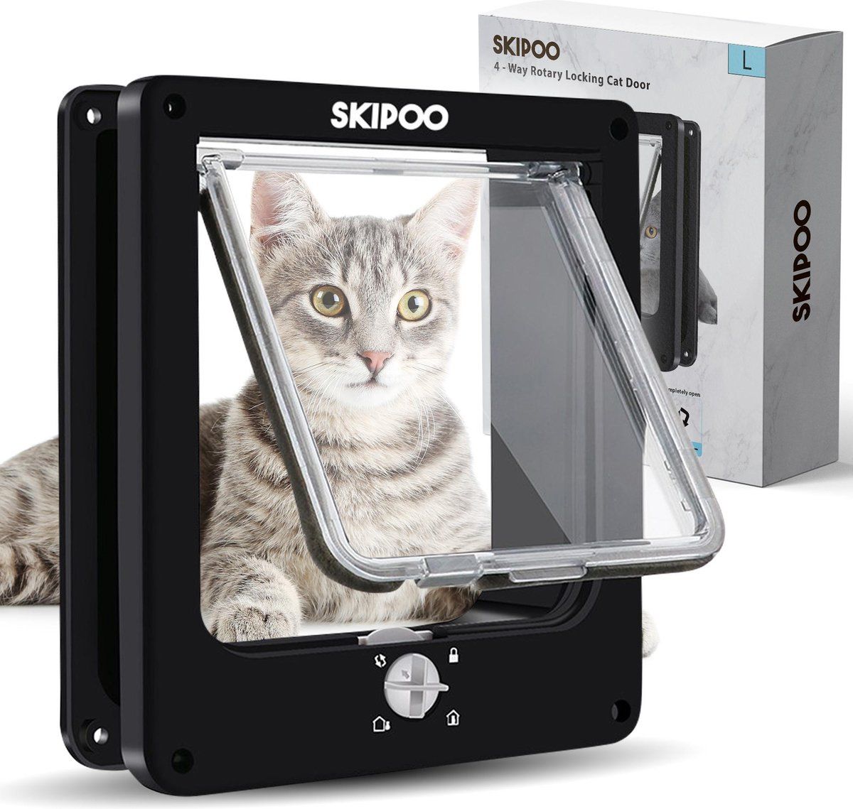 Bekijk productSkipoo Kattenluik met Tunnel - Maat L - Zwart - 4 Vergrendelingsstanden - Weerbestendig - Discusvis