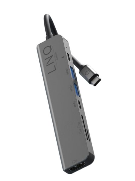 LINQ LQ48004 7-in-1 USB-C Multiport Hub - HDMI, SD, Micro SD, 2x USB-A, USB-C, 100W PD - Grijs - Dockingstations voor laptops