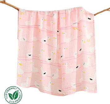 BoefieBoef Grote XL Hydrofiele Doek - Roze Gans - Bamboe & Biologisch Katoen - Doorspoelbare babydoekjes