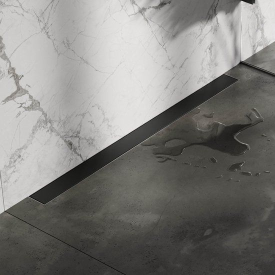 Brauer Douchegoot 90cm - Mat Zwart - Met Muurflens - Zero/Tegelinlegrooster (Omkeerbaar)