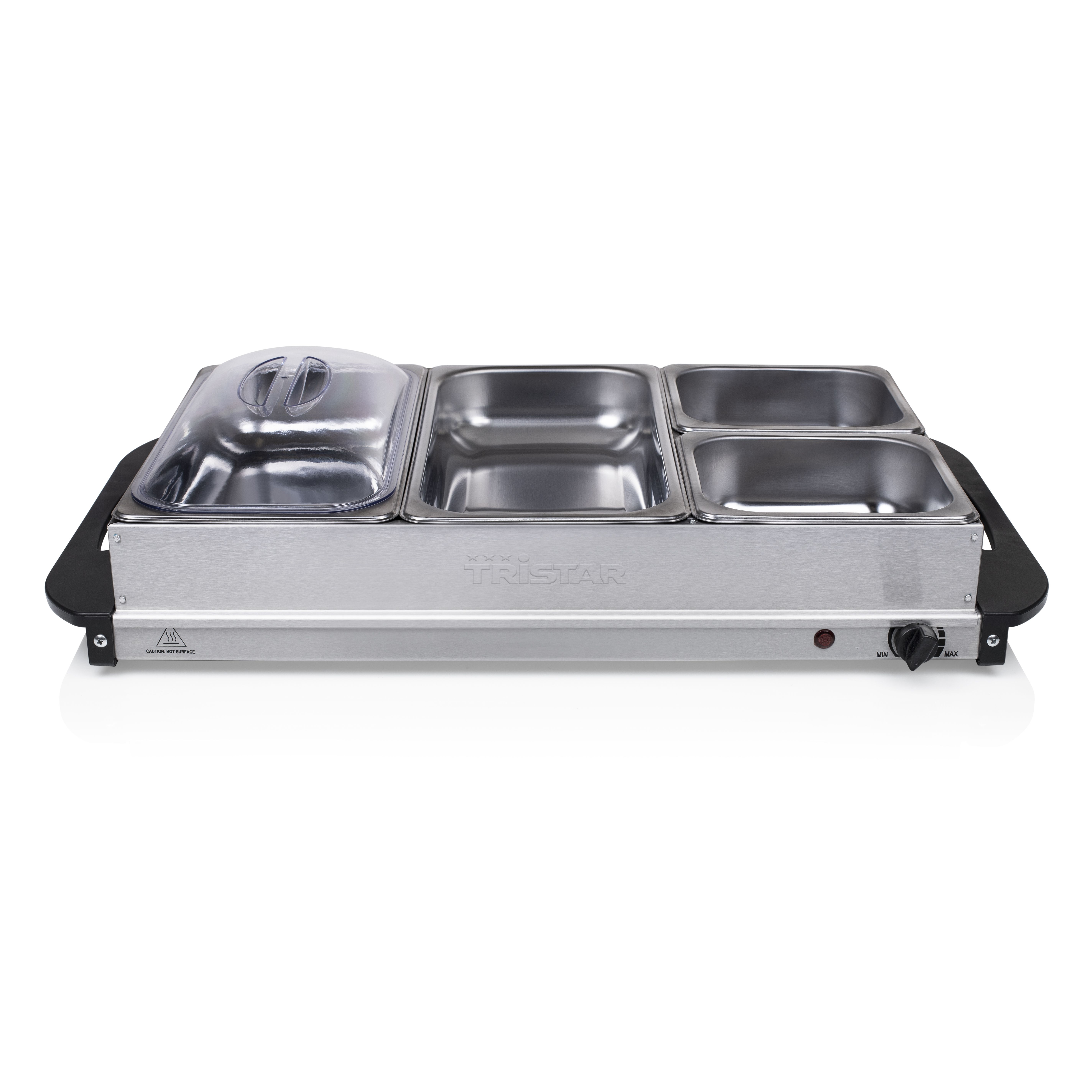 De temperatuur van de Tristar BP-6285 buffet serveerder kan worden geregeld met de thermostaat. Het power indicatielampje laat zien wanneer de warmteplaat aan staat. Verder zit er ook een warmhoudfunctie op die ervoor zorgt dat je eten niet koud wordt.