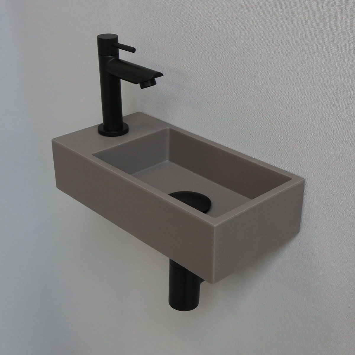 Bekijk productInk Fonteinset Versus Rechthoek Links 36x18x9cm Quartz Betonlook Toiletkraan Sifon Plug Mat Zwart