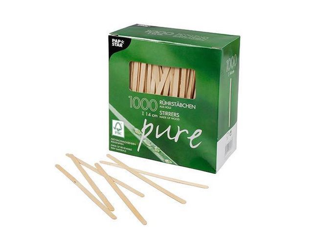 PAPSTAR Pure Houten Roerstaafjes, FSC, 140 mm - Drinkrietjes en roerlepels