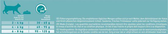 - ```json { "Productinformatie": { "Biologisch": "Nee", "EAN": "7613035608047", "Product gewicht": "1.50 kg", "Graanvrij": "Nee", "Leeftijd dier": "Elke levensfase" }, "Etiketinformatie": { "Speciaal voedingsdoel": "Geen speciaal voedingsdoel", "Fabrikant Adres": "Nestlé Purina PetCare Nederland\nAntwoordnummer 1199 \n1180 VD Amstelveen\nEmail: Consumentenservice@purina.nestle.com\n0800 022 83 83 (gratis)", "Analytische bestandsdelen": "Analytische bestanddelen: \nEiwit: 36,0%; Vetgehalte: 16,0%; Ruwe as: 7,5%; Ruwe celstof: 2,0%; Omega 6 vetzuren: 2,0%.", "Toevoegingsmiddelen": "Toevoegingsmiddelen:\nNutritionele toevoegingsmiddelen: \nIE/kg: Vit. A: 35 000; Vit. D3: 1 100; Vit. E: 680; mg/kg: Vit. C: 160; Taurine: 750; IJzer(II)sulfaat-monohydraat: 210; Calciumjodaat, watervrij: 2,7; Koper(II)sulfaat-pentahydraat: 42; Mangaan(II)sulfaat-monohydraat: 101; Zinksulfaat-monohydraat: 360; Natriumseleniet: 0,25; \nMet antioxidanten.", "Voedingsadvies": "Aanbevolen dagelijkse hoeveelheid (g/dag):\n\nGewicht van kat Hoeveelheid\n2-4 kg 30-65g\n4-6 kg 65-95g\n6-8 kg 95-130g\n\nDe dagelijkse aanbevolen hoeveelheden dienen te worden aangepast aan de weersomstandigheden, het activiteitenpatroon en de fysieke conditie van de kat. Zorg ervoor dat er altijd schoon en vers drinkwater klaarstaat.\n\nWanneer u PURINA ONE voor het eerst geeft, adviseren wij om de eerste 7 dagen de verandering geleidelijk toe te passen door in toenemende mate PURINA ONE te mengen met het huidige voer van uw kat, zodat het spijsverteringsstelsel zich kan aanpassen aan de verandering.", "Voedingswaarde": "VOLLEDIG DIERVOEDER VOOR VOLWASSEN KATTEN", "Soort diervoeder": "Volledig diervoeder" }, "Overige kenmerken": { "Aantal consumenteneenheden (CE)": "1", "Gewicht consumenteneenheid (CE)": "1500 g", "Smaak dierenvoeding": "Kalkoen, Rijst", "Speciaal voor raskat": "Nee", "Verpakking breedte": "205 mm", "Verpakking hoogte": "97 mm", "Verpakking lengte": "301 mm", "Verpakkingsgewicht": "1.54 kg", "Verpakkingsniveau": "Single item" }, "EAN": { "EAN": "7613035608047" } } ```