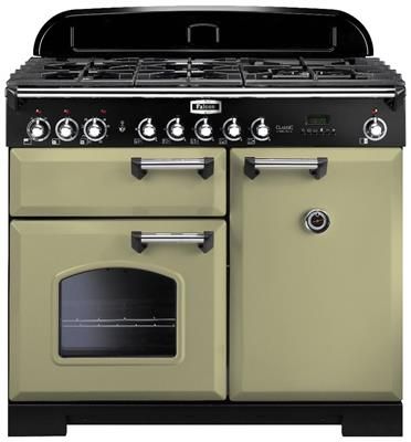 De Falcon Classic Deluxe 100 Dual Fuel, uitgevoerd in olijfgroen met messing accenten, is een stijlvolle toevoeging aan elke keuken. Het biedt een combinatie van traditioneel design met moderne techniek en gebruiksgemak.