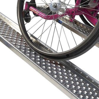 Op zoek naar een lange maar lichte oprijplaat? Dan is deze aluminium oprijplaat van 200 cm ideaal. Door zijn lichte gewicht van slechts 6 kg, neemt u de rijplaat gemakkelijk mee onderweg. Daarnaast voorkomt u met de opstaande rand dat uw motor of ander voertuig naast de rijplaat belandt. Tenslotte beschikt de oprijgoot over een antislipprofiel. Het antislipprofiel zorgt voor een goede grip tijdens het gebruik van de oprijplaat. De oprijplaat wordt per stuk geleverd.