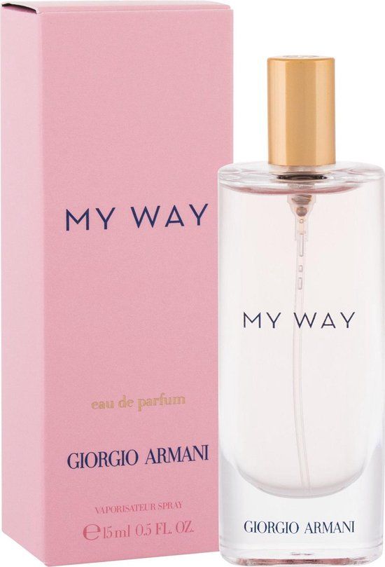 Armani My Way Eau de Parfum 15 ml voor dames. De eau de parfum van Armani My Way zorgt ervoor dat je lekker lang kunt genieten van de geur. Door de 10% tot 20% parfumolie die een eau de parfum bevat, is het een van de meest geconcentreerde formules. Combineer voor een nog langere houdbaarheid de eau de parfum met de verzorgingsproducten van Armani My Way.