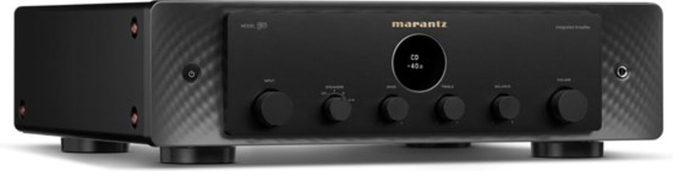 Model 50 zwart. Puur analoge Marantz stereo versterker met 70 Watt vermogen per kanaal, diverse aansluitmogelijkheden en een luxe geïntegreerde phono voorversterker. Zwarte uitvoering