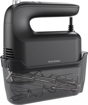 Vivid Green Handmixer 400W - 9 snelheden - Turbofunctie - Opberghouder - Deeghaken - Zwart - Electrische handmengers