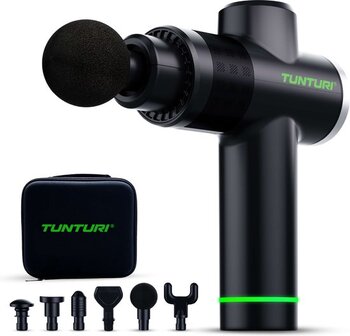 Met de Tunturi MG40 Massage Gun ontspan je gemakkelijk je spieren in je hele lichaam. Je krijgt er namelijk 6 verschillende massage opzetstukken bij. Er zit bijvoorbeeld een opzetstuk bij voor je kuiten en schouderbladen en een opzetstuk voor je borst, buik en armen. Je kiest uit 20 verschillende massagestanden. Zo kies je zelf hoe stevig je masseert. Op de massage gun zit een handig display. Hier lees je gemakkelijk de instellingen op af. Het massage apparaat is stil in gebruik. Hij heeft namelijk een maximaal geluidsniveau van 60 decibel. Op een volle accu gaat de massage gun 3,5 uur mee. Na gebruik berg je alle onderdelen netjes op in de opbergkoffer. Let op: gebruik het apparaat niet of overleg eerst met je arts als: je zwanger bent; je een pacemaker, gewrichtsprothese of elektronisch implantaat hebt; je lijdt aan een of meerdere van de volgende aandoeningen of klachten: diabetes, doorbloedingsstoornissen, spataderen of aderontstekingen.