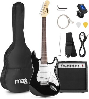 MAX Gigkit Elektrische gitaar met gitaar versterker - Zwart - Beginner gitaarset - Elektrische gitaren