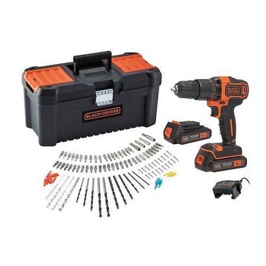 Deze BLACK+DECKER 18V schroefklopboormachine is de ideale partner bij elk Doe-Het-Zelf project. Met een maximaal koppel van 40Nm is deze schroefboormachine uiterst geschikt voor alle schroefklussen in en rondom het huis. Gebruik de 11 (10+1) koppelinstellingen om nauwkeurig te schroeven in verschillende materialen en met verschillende schroefformaten. Gebruik de machine daarnaast voor het eenvoudig boren in hout (tot 25mm) en metaal (10mm). Met de klopfunctie boor je ten slotte ook moeiteloos in steen (tot 10mm) aan zo'n 21.000 slagen per minuut. Dankzij de 10mm snelspanboorkop wissel je eenvoudig tussen verschillende accessoires. De 2 variabele snelheden zorgen voor een optimale controle tijdens het werken. De anti-slip Softgrip handgreep biedt je ten slotte een optimale ergonomie en comfort. Zo kan je langer doorwerken.Deze 18V schroefboormachine maakt deel uit van het BLACK+DECKER 18V POWERCONNECT accusysteem.