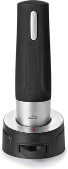 Elektrische kurkentrekker inclusief oplaadstation. Autonoom: 30-40 flessen ontkurken. Ergonomische grip. Afmetingen Ø5 x H25 cm.