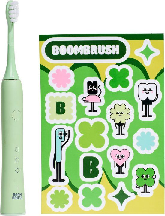 BOOMBRUSH Kiddy Brush - Elektrische Tandenborstel Kinderen - Sonische Tandenborstel incl. Stickers - Groen - 40 Dagen Batterij - Duurzaam - Elektrische tandenborstel