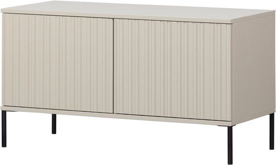 Onze succesvolle Gravure serie in een nieuw jasje! Dit Gravure New tv-meubel, uit de collectie van het Nederlandse interieurmerk WOOOD, is verkrijgbaar in twee formaten: 100 cm breed en 150 cm breed. Gravure New tv-meubel is uitgevoerd in grenenhout en afgewerkt met een dust kleurige lak. Het interieur is vervaardigd uit zwart spaanplaat. De poten zijn van metaal met een zwarte coating. Het Gravure New tv-meubel beschikt over twee deuren met een geluidloos push-to-open systeem.