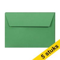 Clairefontaine gekleurde enveloppen bosgroen van 120 grams papier worden verkocht in een pakket van 5 stuks. Deze gladde, platte enveloppen zijn geschikt voor bedrukking door een inkjet- of laserprinter. De groene enveloppen hebben een afmeting van 11,4 x 16,9 cm (C6). Dankzij de zelfklevende sluitingsmethode blijft de inhoud veilig in de envelop. Het 100% zuurvrije papier is geproduceerd volgens hoge mileunormen. - Clairefontaine gekleurde enveloppen bosgroen C6 120 grams (5 stuks)