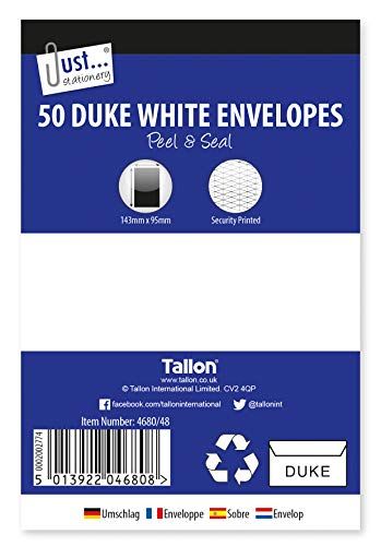 Tallon Just Stationery 50 Envelopes with Adhesive Strip, White - Enveloppen