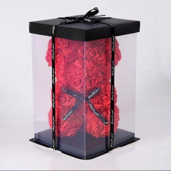 Rozen Beer Teddy met Geschenkdoos - 25cm - Rood - Feestattenties