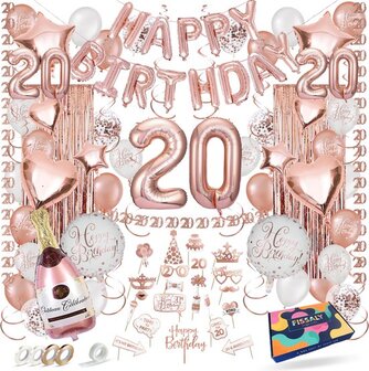 Fissaly 20 Jaar Rose Goud Verjaardag Decoratie Set - Feestversiering - Feestbenodighedensets