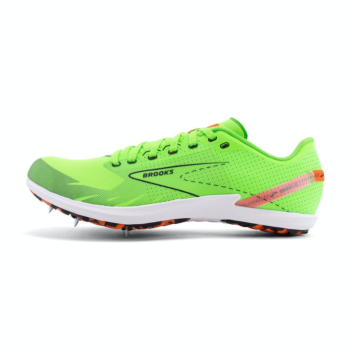 De Brooks Draft XC is een unisex spike voor veldloopwedstrijden. Ontworpen om optimale grip op onverhard terrein te bieden, kunnen de Cross Country spikes gebruikt worden in natte of droge omstandigheden. Laat de concurrentie achter je met deze snelle en stabiele spike. Breek records en verbeter je prestaties met deze fantastische spike. Zool De Draft XC zorgt door de combinatie van een rubberen buitenzool en spikeplaat voor enorme grip tijdens je wedstrijden. De rubberen buitenzool heeft extra textuur om stevige grip te garanderen. De stijve spikeplaat zorgt voor stabiliteit en een krachtige afzet naar de voorvoet. Naast goede grip door de slijztool zorgt het BioMoGo DNA-foam voor goede demping en energieteruggave bij iedere stap die je zet. Dit foam gemaakt van EVA geeft een dynamisch en responsief gevoel tijdens het hardlopen. Dit komt doordat het zachte foam zich aanpast aan jouw loopstijl, snelheid en gewicht. Oftewel: een foam dat echt speciaal voor jou is gemaakt. Bovenwerk Het lichtgewicht bovenwerk omsluit de voeten op comfortabele wijze. De schoen biedt veel stabiliteit en ondersteuning. Het bovenwerk wordt compleet gemaakt door de toevoeging van een hielband voor het gemakkelijk aan- en uittrekken. Geef je prestaties een boost met deze spikes! Bij deze spike worden er standaard spikepuntjes en een sleutel meegeleverd.