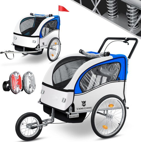 Bekijk productFietskar kind - fietsaanhanger - 2-zits - veerdemping - blauw - Fietstrailers