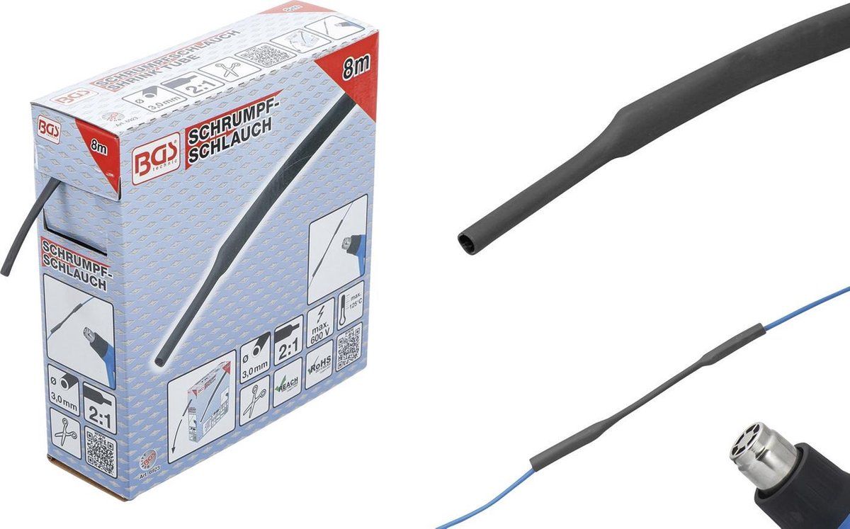 BGS 6923 Krimpslangdoos - zwart - Ø 3 mm - 8 m